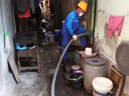 JAKARTA – Peringati HUT ke-34 Pengolahan Air Limbah Jakarta (Paljaya), puluhan rumah warga di seluruh wilayah DKI mendapat pelayanan aksi sedot WC gratis. Salah satunya penyedotan